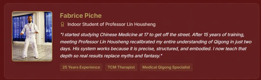 “I never thought I could learn Qigong well on Skype, but my online lessons with Fabrice Piché last year proved that I would. Fabrice is knowledgeable in Qigong, the body and energetic body work... In addition, he recorded the sessions, so I would watch the videos and get a better understanding in what was taught.”